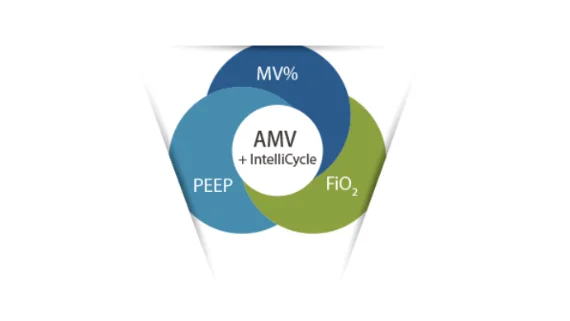 Адаптивная минутная вентиляция (AMV TM) в сочетании с IntelliCycleTM позволяет аппарату ИВЛ автоматически регулировать параметры вентиляции, чтобы снизить необходимость в частой настройке параметров и улучшить синхронизацию между пациентом и аппаратом ИВЛ.