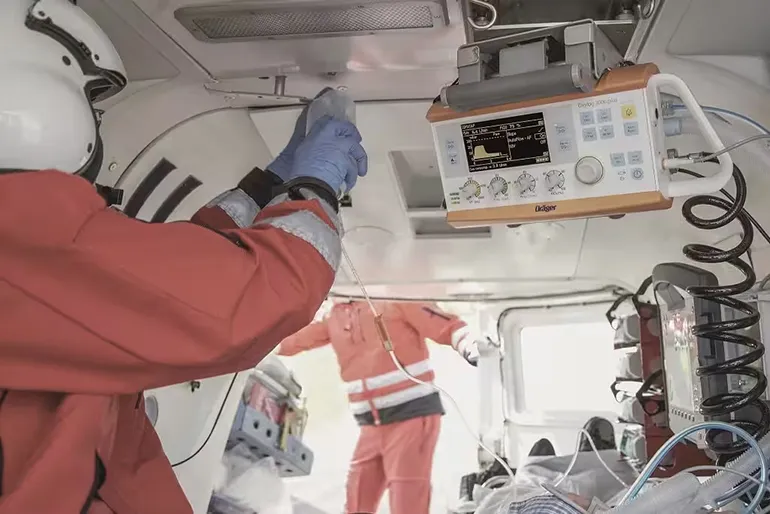 Аппарат прошел тестирование для использования в самолетах и вертолетах и автоматически учитывает высоту над уровнем моря, соответствующим образом корректируя заданные и измеренные объемы пациента, устраняя необходимость в ручном расчете и снижая риск ошибки.