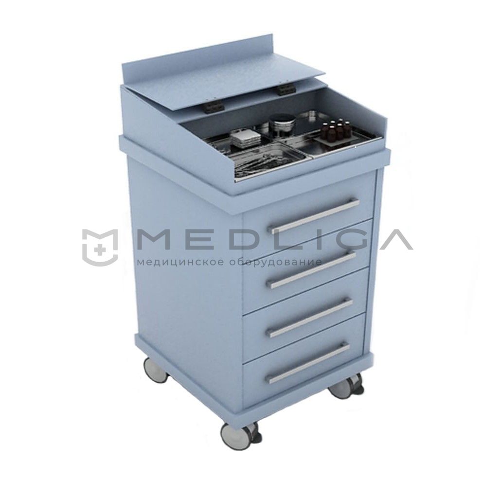 ZERTS Mobil - это дополнительный мебельный модуль, который представляет собой систему хранения. При желании можно подсоединить к основному гинекологическому комбайну с помощью столешницы под углом в 45 либо 90 градусов. В качестве опции доступна вставка для компьютерной клавиатуры в верхнем ящике.