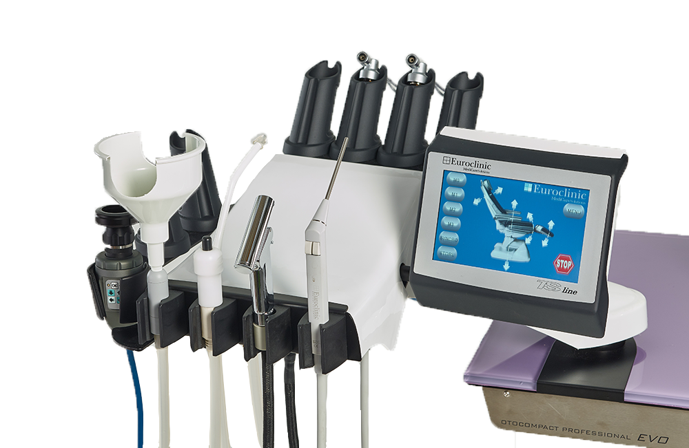 ЛОР-комбайн Euroclinic Otocompact Professional EVO оснащен недоступными для большинства профильных приборов высокотехнологичными инструментами для проведения качественного отоларингологического обследования и лечения пациентов, среди которых сенсорная панель управления, обеспечивающая полный контроль над всеми процессами и тщательный мониторинг таких показателей, как давление и уровень воды, с синхронным получением сигналов о возможных сбоях в рабочем процессе.