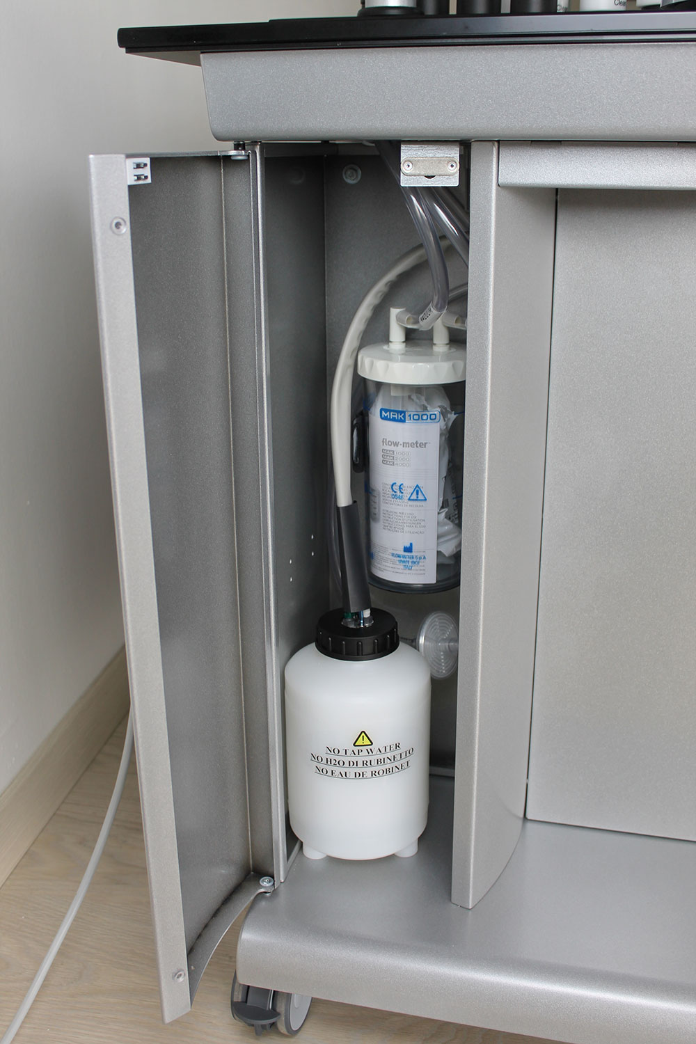 - Водный шприц для промывания уха: автоконтроль t 37° С, металлический наконечник, защита от брызг, резервуар для жидкости на 2 л;