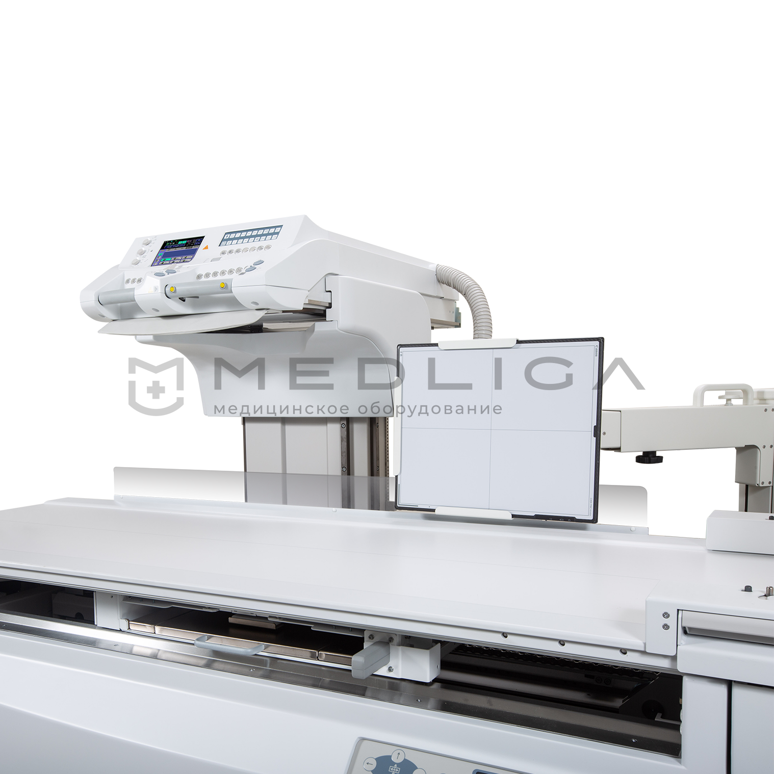 - Простые в использовании аксессуары, такие как поручни, упоры для плеч, подножка и компрессионный пояс, обеспечивают поддержку пациента для достижения положительных результатов обследования.