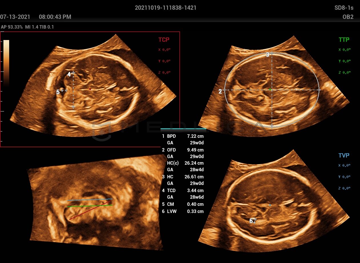 При нажатии на трехмерное изображение мозга плода незамедлительно будут получены